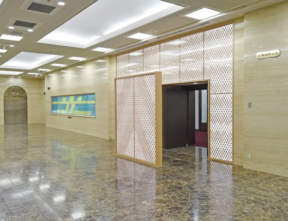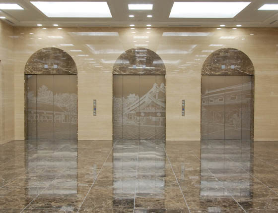 1階、エレベーターで地階のレストランホールにも、上層階にもスムーズに行ける